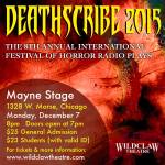 I’m thrilled to announce that my short play, “Imaginary Fiend” has been selected as part of Wildclaw Theatre’s annual horror plays festival, “Deathscribe.”
